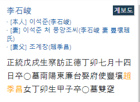 (풍양조씨쪽에는 (클)석자인데, 전주이씨쪽에는 (돌)석자로 되어 있다.)