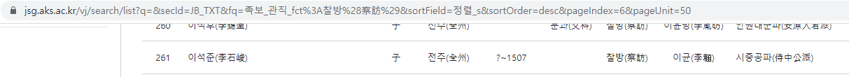 사위 찰방 이석준은 전주이씨이고, 관직은 종6품 찰방이다.