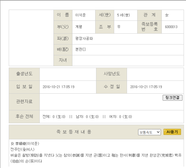 전주이씨 족보에 장인이 조계평이 아닌 조계창으로 나온다.